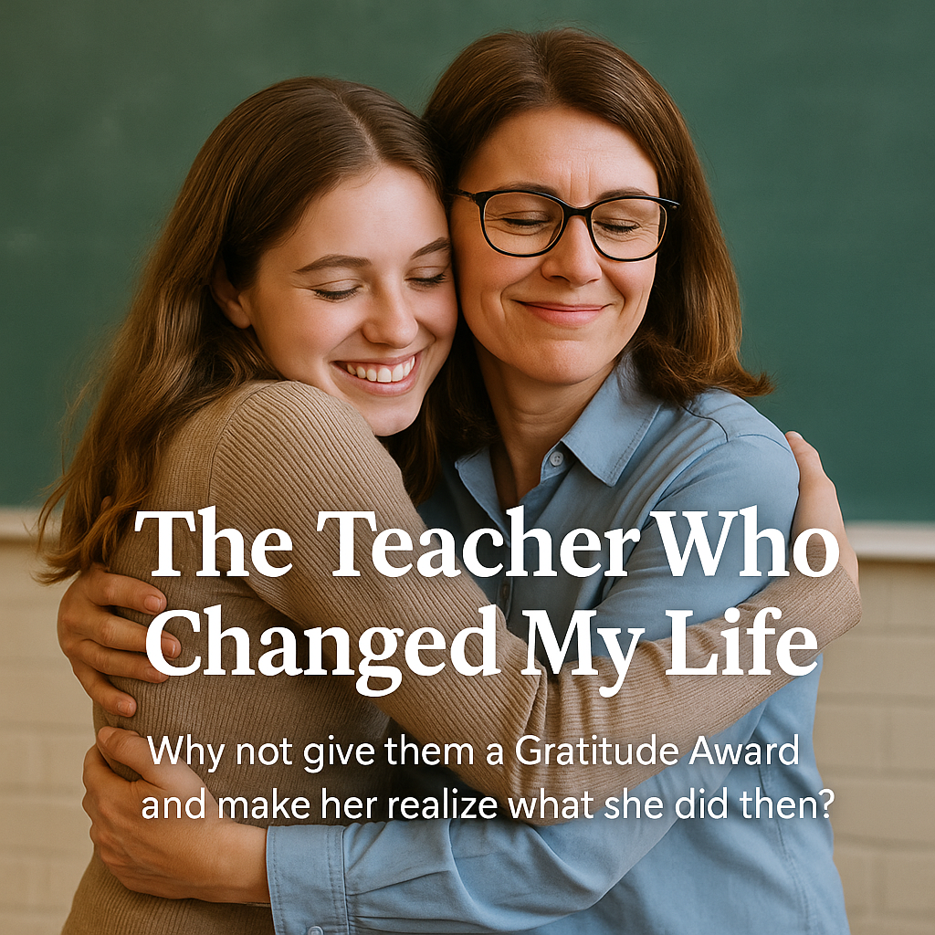 And to everyone reading this if a teacher changed your life too take a moment to honour them. Give them a Gratitude Award and let them finally see the difference they made.